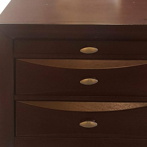 Constructed from solid wood, this nightstand is built to last. The embossing veneer in an espresso finish not only enhances its aesthetic appeal but also ensures durability. The intricate design details make it a standout piece that will surely impress your guests.