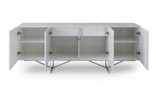 The contemporary design of this buffet makes it a versatile addition to any room. Whether placed in your living room, hallway, dining room, or bedroom, it seamlessly fits into various decor styles. The sleek white high gloss finish adds a touch of elegance, making it a focal point in your home.