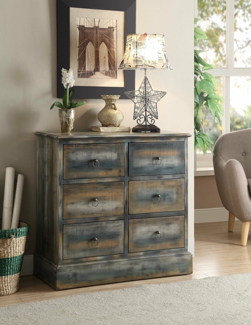 Antique oak and teal finish