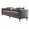 The bench-style seating of this gray velvet upholstery sofa is designed for maximum comfort, allowing you to relax and unwind after a long day. With high shelter armrests adorned with nailhead trim, this sofa adds a touch of sophistication to any room. The overstuffed seat cushions are perfect for slouching back and enjoying your favorite book or movie.