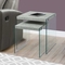 Attention to detail is evident in the construction of this nesting table set. Made from high-grade particle board, it is designed to withstand daily use while maintaining its elegant appearance. The laminate finish not only enhances the look but also makes it easy to clean and maintain. The clear glass top adds a touch of elegance while providing a sturdy surface for your decorative items, drinks, or snacks.