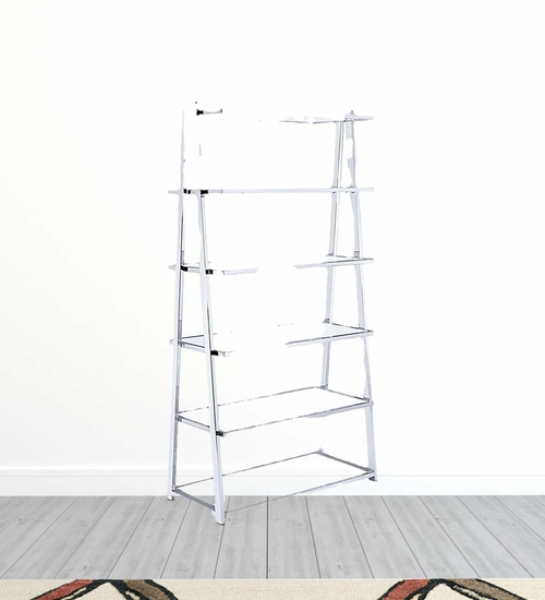 The bookcase features a sleek white high gloss finish that adds a touch of modern elegance to your living room or office. The chrome metal frame not only enhances its visual appeal but also ensures durability and stability. This combination of materials makes it a versatile addition to any home setting, seamlessly fitting into various decor styles.