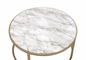The coffee table set features a large table with a clear glass top, complemented by a smaller table with a dark faux marble finish. The smooth curves and streamlined design make it an ideal addition to your dining or kitchen area, providing an outstanding visual appeal. The gold finished metal base adds a touch of sophistication, making it a true showpiece in your home.
