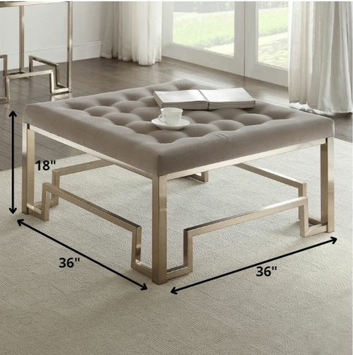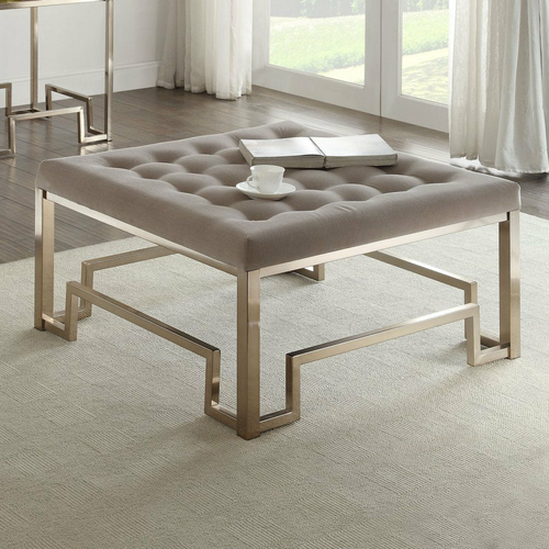 The ottoman features a high-end design that makes it an ideal addition to any modern or contemporary living room. Its elegant champagne finish on the metal tube frame and geometric base adds a touch of glamour, making it a standout piece in your home. Whether used as a footrest, extra seating, or a coffee table, this ottoman is versatile enough to meet your needs.
