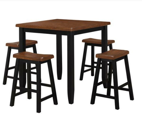 This 5pc Oak Black Rubber Wood Counter set is not just limited to dining rooms; it can also be used in kitchens, breakfast nooks, or even as a stylish addition to a home bar area. Its versatile design allows it to blend seamlessly with various decor styles, from modern to traditional. The compact size makes it a great option for apartments or homes where space is at a premium.