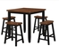 Brighten your dining space with the 36inches X 36inches X 36inches 5pc Oak Black Rubber Wood Counter set. This multifunctional counter height table set is creatively constructed to be a perfect addition to every home limited in space. Not only does it serve as a space-saving masterpiece, but it also offers a money-saving package, as it is designed with both a table and stools. Featuring an inspiring wooden tabletop and backless stool tops in an elegant oak finish, this dining set is both practical and stylish.