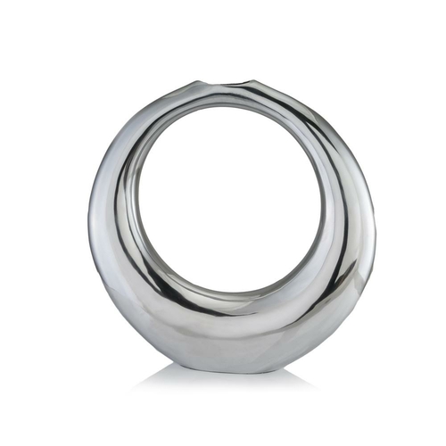 Introducing the exquisite 3 inches X 16 inches X 17 inches Silver Aluminum Ring Small Hoop Vase, a stunning addition to your home decor that effortlessly combines style and functionality. This beautifully crafted vase is designed to transform the look and feel of any space, making it a must-have for those who appreciate modern aesthetics. With its sleek silver finish and unique hoop design, this vase is sure to catch the eye of anyone who enters your home.