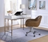 The desk features a beautiful champagne and silver finish that adds a touch of sophistication to your workspace. Its rectangular top provides ample space for your laptop, books, and other essentials, while the middle drawer offers convenient storage for stationery and documents. The sleek lines and modern aesthetic make it a perfect fit for contemporary interiors.