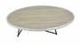 The oval shape of the table not only adds a unique aesthetic but also maximizes space efficiency, making it ideal for smaller living areas. The weathered gray oak finish gives it a rustic charm, while the sleek metal trim adds a contemporary touch. This combination makes it a versatile piece that can complement various interior styles, from modern to traditional.