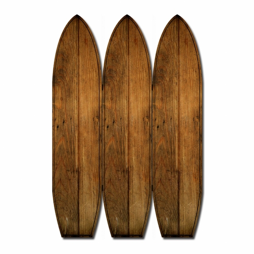 The surfboard screen features a captivating design that showcases three surfboards hinged together, each side displaying a different image. This versatility allows you to choose the side that best fits your mood or decor. The rich brown finish adds warmth and sophistication, making it a perfect addition to any room.