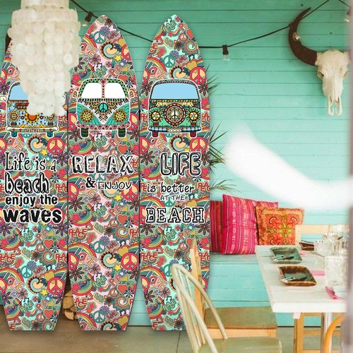 Whether you live in a beach house or a city apartment, the multicolor vintage wood surfboard screen fits seamlessly into any environment. Its coastal style complements various decor themes, from nautical to bohemian. Use it in your living room, bedroom, or even a home office to add a splash of color and personality.