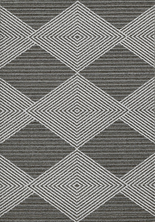 The geometric diamond pattern adds a contemporary touch to any room. Available in elegant grey and ivory colors, this rug complements a variety of decor styles, from modern to traditional. Its chic design makes it an ideal choice for living rooms, patios, or any space that needs a refreshing update.