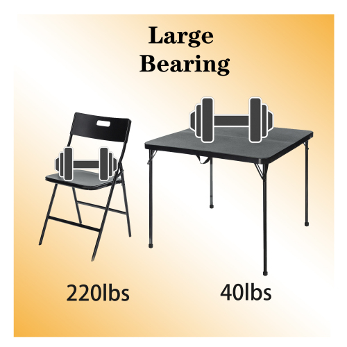 HEAVY DUTY MATERIALS - ABS tabletop, PP seats, cross-braces reinforced steel legs(0.8x0.55in) and safety locking mechanisms ensure its stability and durability. Lightweight but heavy duty. The bearing capacity of table is 40lbs and that of a chair is up to 220lbs.