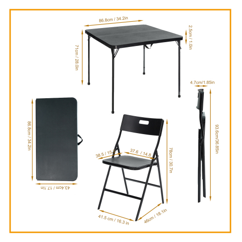 COMFORT - Our stylish folding table and chairs set brings you with incredible comfort. It makes your life- easier and gives you the gift of extra-space. perfect for not only outdoor garden, lawn, patio, pool, community center, coffee time, but also suitable for indoor kitchen, living room, dinning room, etc. You can have an afternoon tea, have a picnic, camping, traveling, holiday BBQ and other outdoor events with our table and chairs set.