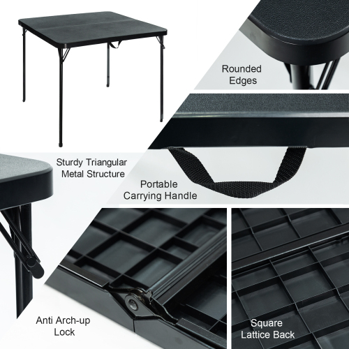 FOLDABLE & PORTABLE - Table and chairs can be folded up for space saving and easy transportation and storage when not in use. Anti-arch-up lock for flat surface in use. With the carrying handle, easy to take it wherever you go.