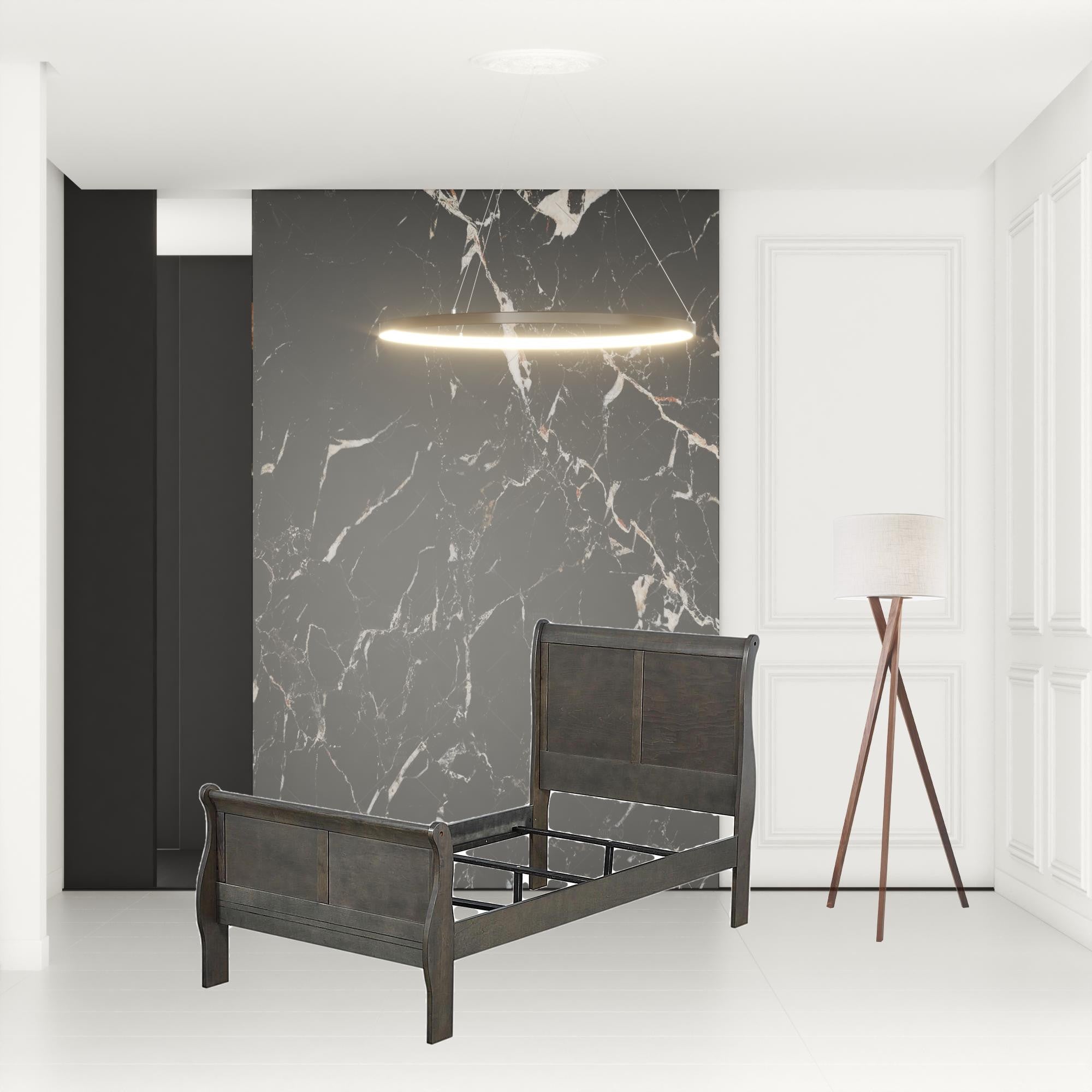 Transform your bedroom into a sanctuary of style and comfort with the 56inches X 85inches X 47inches Dark Gray Wood Full Bed. This stunning piece of furniture is designed to bring a touch of casual elegance to your home. The eye-catching sleigh bed design is not only visually appealing but also provides a cozy and inviting atmosphere for restful nights.