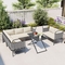 - [Versatile Seating Arrangement] Our set, featuring 3 loveseats and 1 corner sofa, champions versatility with its free combination design. Whether you're hosting a cozy family reunion or a lively party, you can tailor the arrangement to fit the occasion perfectly. The inclusion of a cross-legged glass table not only adds to the aesthetic appeal but also ensures that comfort and functionality go hand in hand, making every moment spent outdoors truly unforgettable.