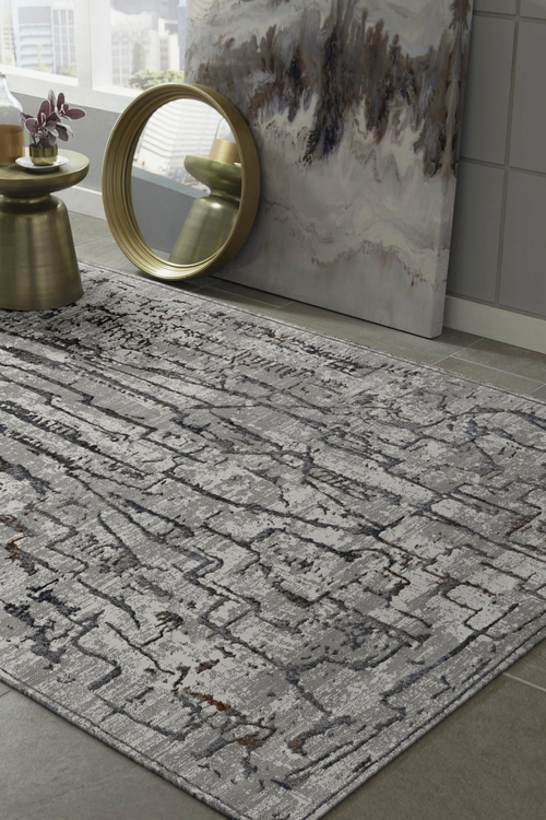 The grey abstract design of this rug adds a modern touch to your home decor. Its neutral color palette makes it versatile, allowing it to complement various color schemes and furniture styles. The metallic highlights woven throughout the rug catch the light beautifully, adding a touch of elegance and sophistication to your space.