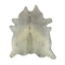 A luxurious 72x84 inches natural and light gray cowhide area rug, showcasing its unique texture and sheen, perfect for contemporary home decor.