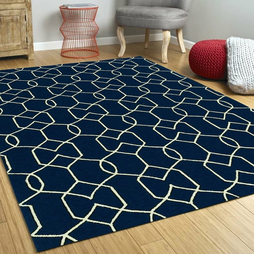 Enhance your home decor with the stunning 7 inches x 10 inches Navy Blue Hand Hooked UV Treated Trellis Indoor rug. This exquisite piece is designed to transform your floors into beautiful works of art, adding a touch of glamour and sophistication to any room. Made from high-quality UV-treated polypropylene, this rug is perfect for both indoor and outdoor use, ensuring that it remains vibrant and durable over time.