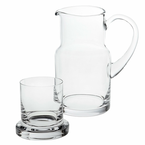 The mouth-blown glass design of this carafe set is a testament to fine craftsmanship. Each piece is unique, showcasing the artistry involved in its creation. The clear glass allows you to showcase the contents beautifully, making it an ideal choice for serving water, juice, or any beverage of your choice. Its refined aesthetic makes it a perfect addition to any decor style, from modern to traditional.