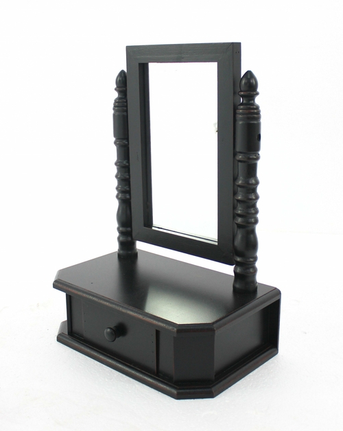 Here are some key specifications of the 8.5 x 14 x 20 Black Traditional Drawer Table Mirror: