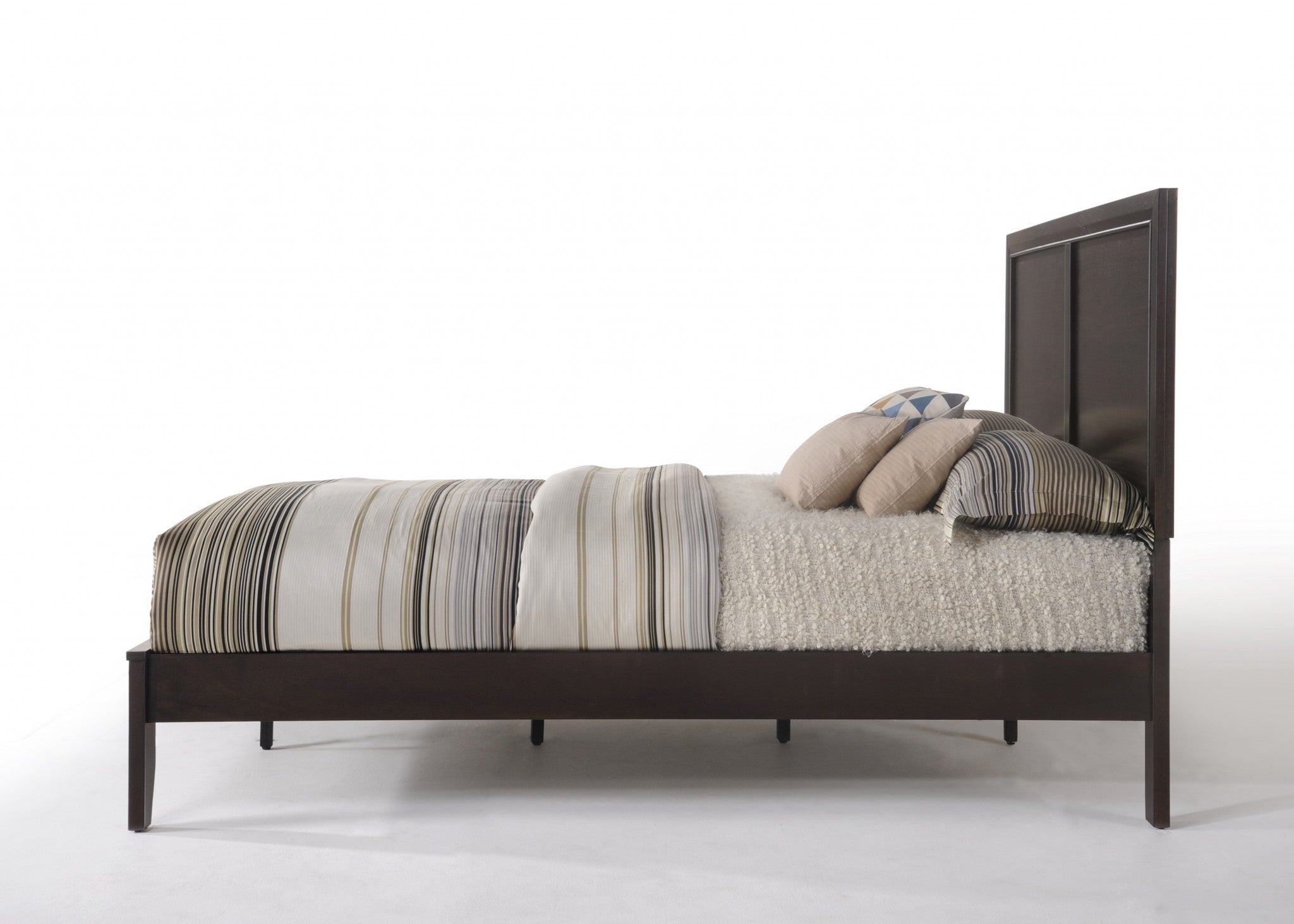 Espresso Rubber and Tropical Wood King bed with rectangular headboard and low profile footboard, showcasing rich wood finish.