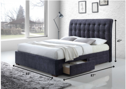 Here are some key specifications of the Dark Gray Fabric King Bed with Storage:
