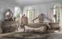 This king bed is part of a complete bedroom collection that includes a dresser, chest, and nightstand, all featuring matching detailed French style fronts. Together, these pieces create a cohesive look that embodies vintage elegance. The entire collection is designed to complement each other, making it easy to furnish your bedroom with style.