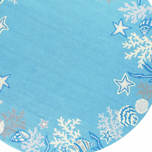 The sea blue color of this rug evokes the serene beauty of ocean waves, while the bordered coral reef design adds a modern twist to traditional coastal decor. Measuring 7'6 inches in diameter, it is the perfect size for various indoor spaces, including living rooms, bedrooms, or even entryways. Its contemporary style makes it a versatile addition to any home.