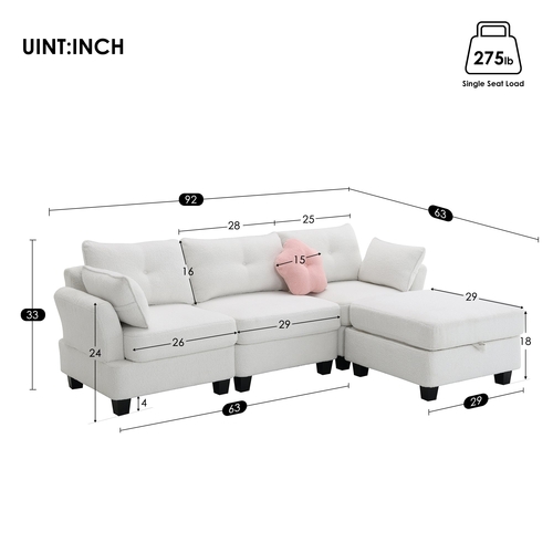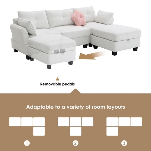 - Removable Storage Ottoman: It has 25*25*5.5'' of storage space, which makes it easy to store sundries and items. In addition, it can be used as a footstool, extra seating or a small coffee table with a very practical design. You can place the convertible ottoman anywhere, giving the sofa more possibilities and fun. You can set it in different positions and shapes according to your preference.