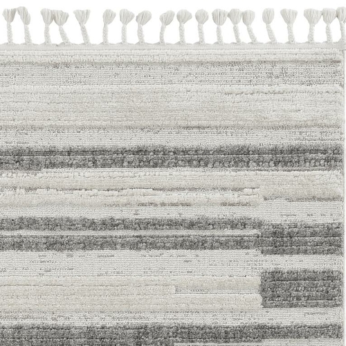 Transform your living space with the exquisite 94 x 130 Ivory Grey Polyester Rug. This stunning rug combines comfort, style, and modern design, making it a perfect statement piece for any room in your home. Crafted from 100% polyester, this machine-woven rug features a decorative cut loop pile and charming fringe, adding a touch of elegance to your decor.