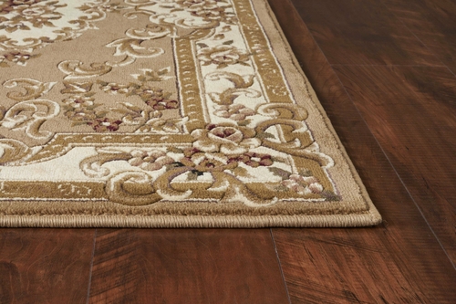 A beautiful 9x13 beige and ivory area rug with intricate hand-carved details, perfect for enhancing home decor.