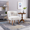 Classic upholstered fabric comfy lamb wool living chairs made of 100% polyester,soft and easy to use. Sturdy legs made of solid wood, strong and durable.