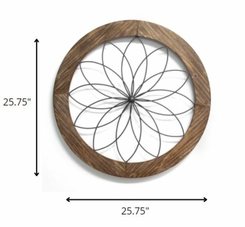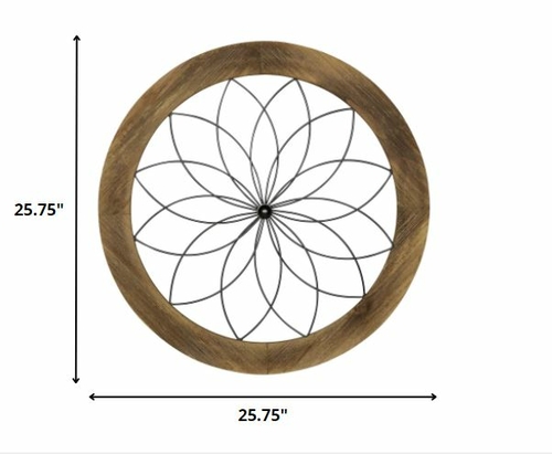 Transform your living space with our exquisite Black Metal and Wood Framed Wall Art. This stunning piece of decor features a beautifully crafted round floral-themed metal design, elegantly bordered by a natural wood frame. The combination of black metal and light brown wood creates a striking contrast that adds depth and character to any room.