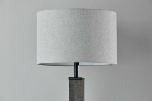 The lamp's architectural flair is accentuated by its textured light grey fabric shade, which diffuses light beautifully, creating a warm and inviting ambiance in your living space or bedroom. The combination of materials not only enhances its aesthetic appeal but also ensures durability and longevity. The black wood finish adds a touch of sophistication, making it a versatile piece that complements various color schemes and styles.