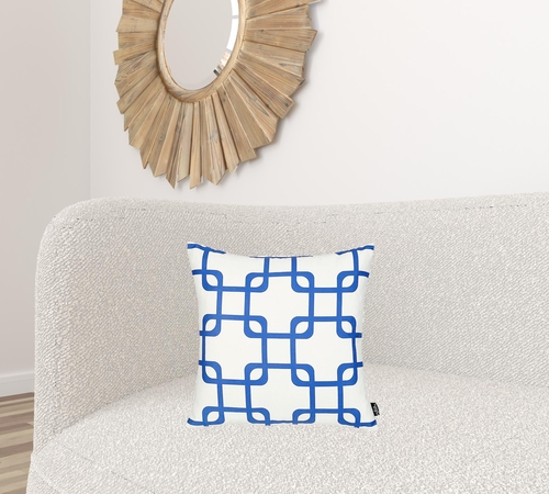 Transform your living space with the stunning Blue and White Geometric Squares Decorative Throw Pillow Cover. This eye-catching pillow cover is designed to bring a burst of color and modern flair to your home decor. Made from 100% brushed polyester, it offers a soft and luxurious feel, making it a perfect addition to your couch, bed, or any seating area.
