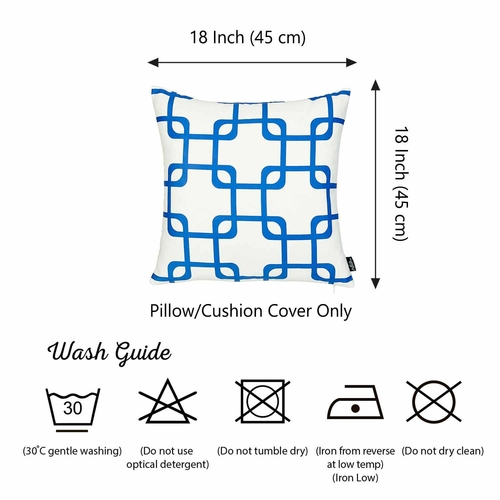Maintaining the beauty of your Blue and White Geometric Squares Decorative Throw Pillow Cover is simple. It is machine washable, allowing for easy cleaning. For best results, wash in cold water separately on a gentle cycle, and tumble dry on low. Avoid using bleach and do not iron to preserve the quality of the fabric.