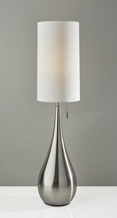 Introducing the Brushed Steel Metal Teardrop Table Lamp, a stunning addition to your home decor that combines elegance with contemporary style. This lamp features a unique teardrop-shaped silhouette that not only enhances the aesthetic of your space but also serves as a functional lighting solution. Standing at an impressive 34.5 inches tall, it makes a strong statement in any room, whether placed on a side table, console, or nightstand.