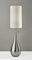 The lamp's brushed steel finish adds a touch of sophistication, while the tall, thin drum shade made from textured white fabric softens the overall look. This minimalist design is perfect for those who appreciate modern chic decor. The combination of materials and shapes creates a harmonious balance that can complement various interior styles, from contemporary to industrial.