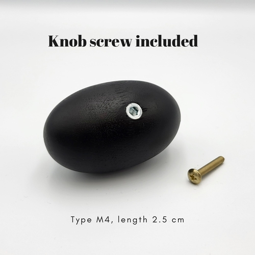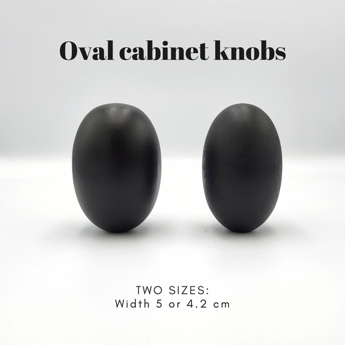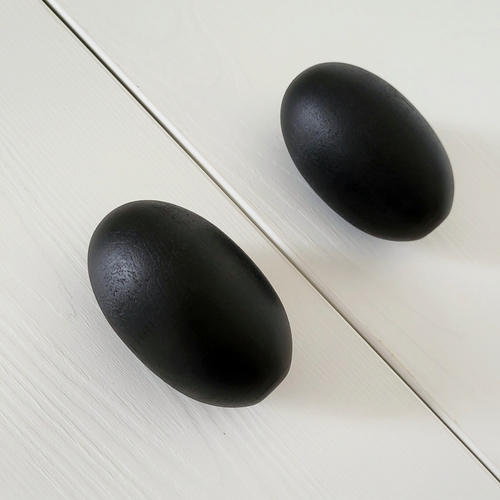 Black oval big cabinet knobs are made from solid wood and painted in durable matte black paint.