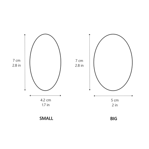 WIDTH: small - 4.2 cm (1.7 in), big - 5 cm (2 in).