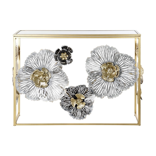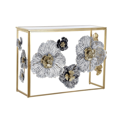 If you want to add a touch of originality to your home, you will do so with Console DKD Home Decor Mirror Grey Golden Metal Flowers (15.6 x 46.4 x 80 cm).