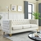 - ✔ Sturdy and durable. The sofa's frame is made of solid wood for added sturdiness and durability. With comfortable foam, soft cushions supported by a curved spring structure, metal legs for years of use, and tufted buttons on the back and arms, this sofa is perfect for those who want to rest after a busy day.