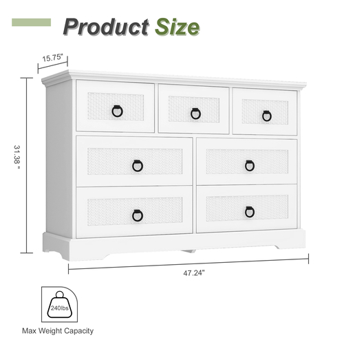 • Ample Storage with 7 Drawers: The spacious white drawers dresser offers abundant storage with 7 generously sized drawers, suitable for organizing clothes, toys, books, and more. Say goodbye to clutter and hello to a tidy and organized living space.