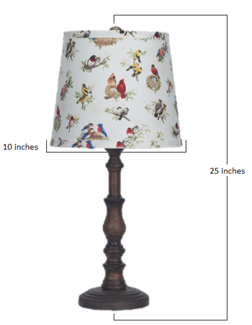The distressed brown finish of this table lamp gives it a vintage charm that complements various decor styles, from traditional to contemporary. The intricate birds printed shade adds a whimsical touch, making it a delightful focal point in your room. Whether placed on a side table, desk, or nightstand, this lamp will elevate the aesthetic of your space.
