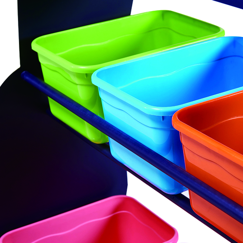 Removable toy storage bins for playtime and easy cleanup. Ideal for kids rooms playrooms or classrooms.