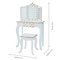 DETAILS: Vanity set includes a vanity table and a stool. 3 piece mirror with LED lights around central mirror. A pull-out center drawer with a knob provides a spacious storage area for storing items such as hair accessories, lip balms, stickers, jewelry, etc. to help your little one maintain a clean and tidy environment. It is a perfect addition for girl's room. Dimensions - Table: L59.7 x W29.2 x H97.8 cm and Chair: L30 x W26.5 x H34.5 cm.