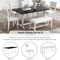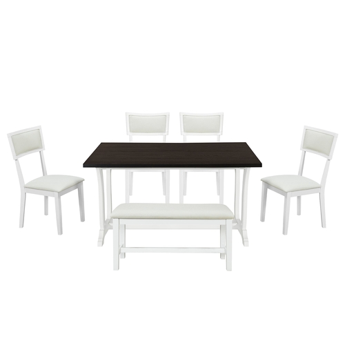 - [Upholstered Dining Chairs&Bench] Our dining set includes four chairs and a padded bench, ideal for accommodating six people with ease. The chairs feature chic curved backrests, while the bench guarantees stability through its stretcher design. Both the chairs and bench can uphold a weight of up to 250 lbs, blending sophistication and sturdiness to enhance your dining experience.