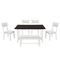Our dining set includes four chairs and a padded bench, ideal for accommodating six people with ease. The chairs feature chic curved backrests, while the bench guarantees stability through its stretcher design. Both the chairs and bench can uphold a weight of up to 250 lbs.